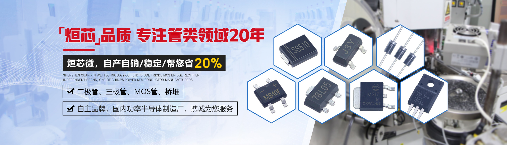 深圳市烜芯微科技有限公司是一家集研發(fā)、生產(chǎn)、銷售于一體,專注于二極管、三極管,MOS管、橋堆等功率半導體領域發(fā)展的企業(yè)。采用國際領先的GPP芯片生產(chǎn)工藝及一心多Die高精密制造工藝,擁有功率半導體器件工程實驗室,全自動高精密生產(chǎn)設備,產(chǎn)品層層把控,全程可追溯,保障了每只產(chǎn)品的卓越品質(zhì)。 產(chǎn)品封裝包括SMA,SMAF,SMB,SMBF,SMC,SOD-123,SOD-123FL,SOD-323,SOD-323FL,SOD-523,SOD-723,SOT-23,SOT-89,SOT23-3L,SOT23-5L,SOT23-6L,SOT-223,SOT-523,SOT-723,DO-41,DO-15,DO-27,DO-35,R-1,R-6,LL-34,LL-41,TO-277,TO-92,TO-92S,TO-92L,TO-126,TO-251,TO-252,TO-262,TO-263,TO-220,TO-220F,TO-247,TO-3P,TO-264,MBS,MBF,MBM,ABS,UMB,UMSB,DB,DBS,D3K,KBP,GBP,GBU,GBL,GBJ,KBL,KBU,KBJ,KBPC,KBPC6,KBPC8,KBPC-W,DNF,TSSOP-8,TSSOP-16,SOP-4,SOP-6,SOP-8,SOP-10,SOP-14,SOP-16,DIP-4,DIP-6,DIP-8,DIP-10,DIP-14,DIP-16,月產(chǎn)各封裝達6億只。 公司通過了ISO14001環(huán)境管理體系認證,產(chǎn)品均獲得了ISO9001質(zhì)量體系認證、UL、SGS等認證,符合歐盟最新RoHs指令。擁有和致力于烜芯微/XXW自主品牌產(chǎn)品的推廣,提供技術(shù)支持,選型替換,cost down方案及擁有專業(yè)的生產(chǎn)管理團隊和銷售團隊,保證了供貨穩(wěn)定及售前選型服務等問題。 公司產(chǎn)品廣泛應用于開關電源、適配器、逆變器、控制器、汽車電子、家用電器、通訊設備、無線充、鋰電池保護板、驅(qū)動電機、安防警報、太陽能光伏產(chǎn)業(yè)等多個領域。取得了國內(nèi)外眾多品牌大廠的認可與合作,我們將堅持奉行“烜芯品質(zhì),誠信經(jīng)營,合作共贏”為公司經(jīng)營理念!竭誠為新老客戶提供優(yōu)質(zhì)的產(chǎn)品及服務。